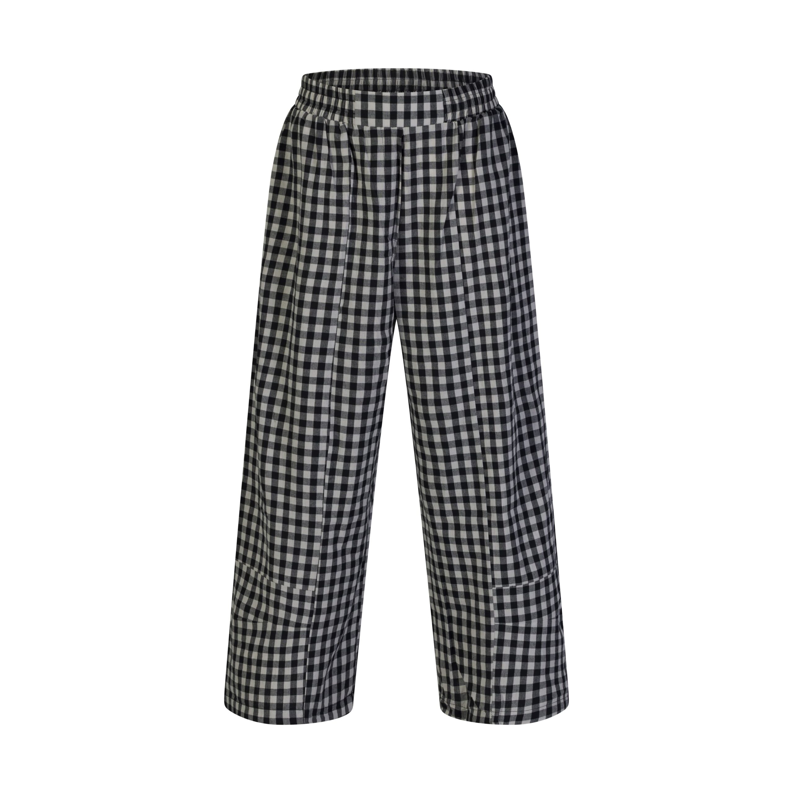 מכנסי משבצות מבד נעים דק 100 אחוז כותנה, שחור לבן, כיסים וגומי במותן גזרה רחבה מאוד